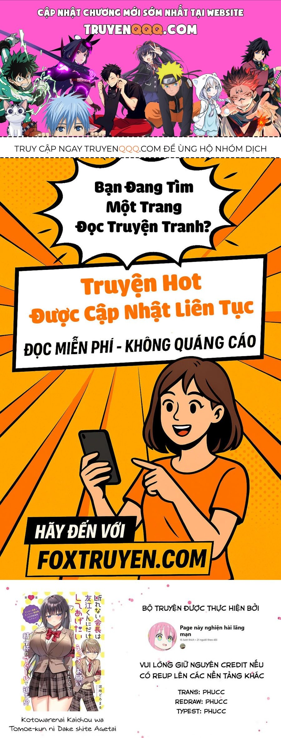 Thảo luận về Kotowarenai Kaichou Wa Tomoe-Kun Ni Dake Shite Agetai (0)